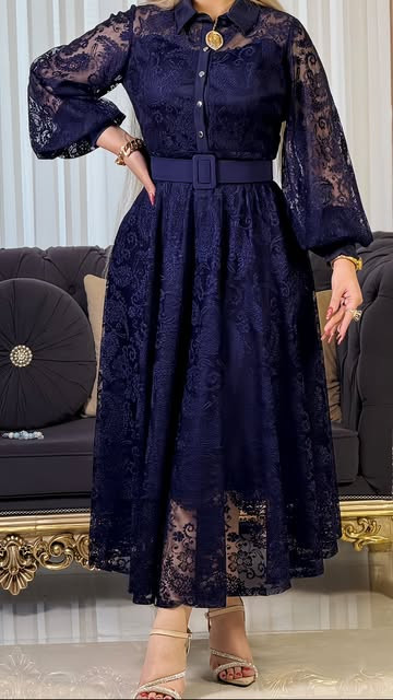 پیراهن گیپور مشکی و سورمهای با قد ۱۳۵ سایز :۳۸تا ۴۸
