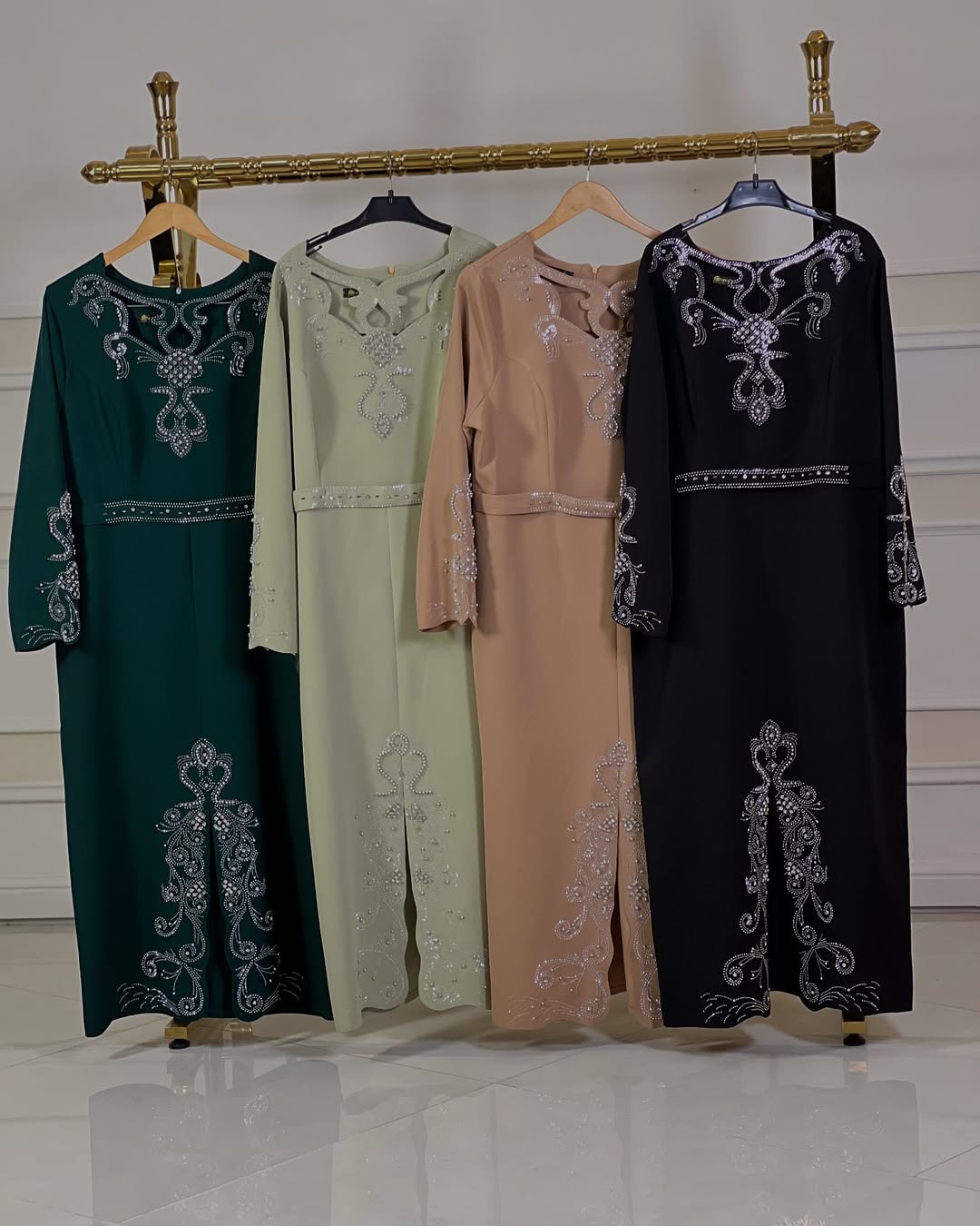 پیراهن مجلسی میدی با سنگکاری سایز ۴۴تا۵۸