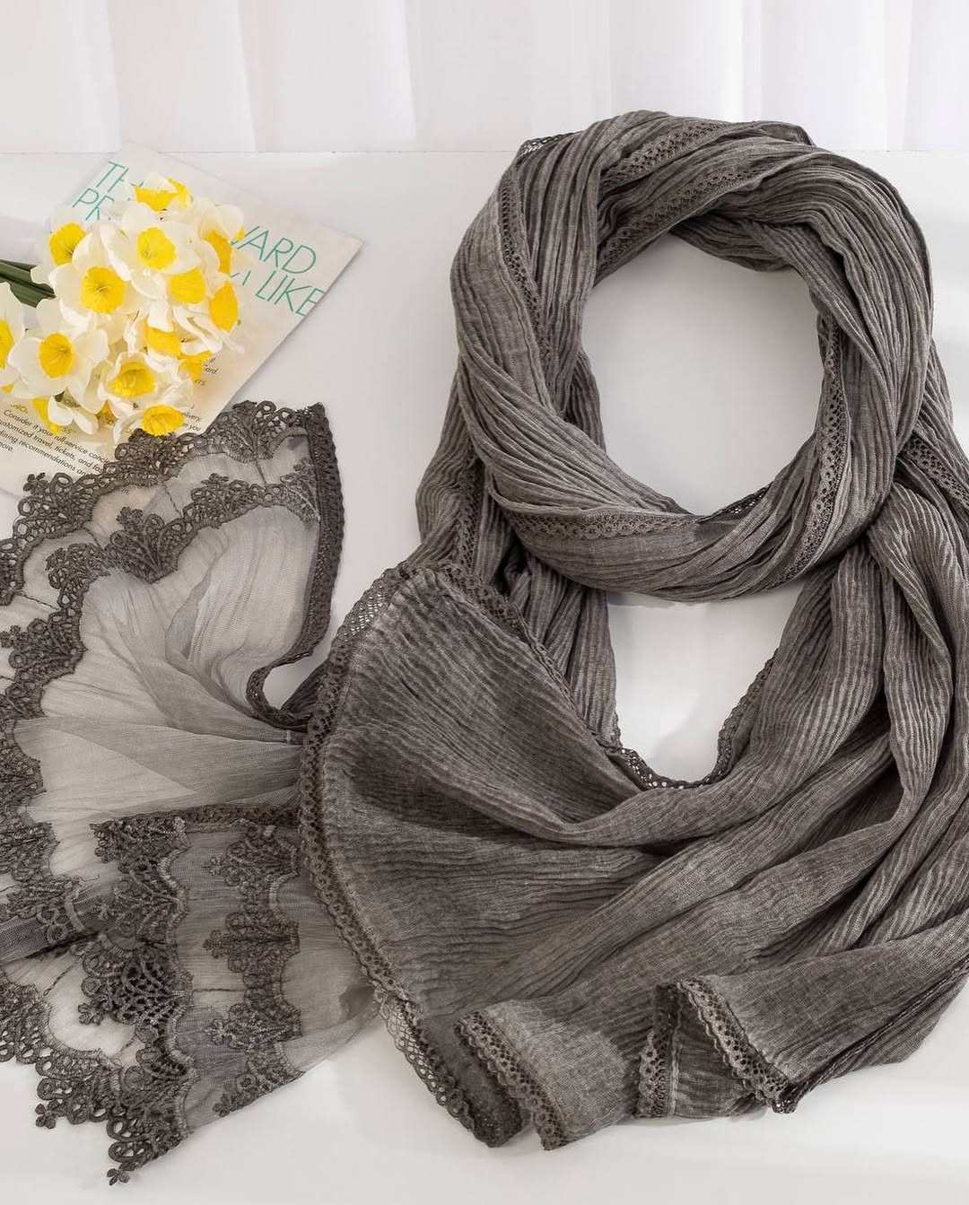 ”تا حالا به این فکر کردی که شال و روسریت چقدر میتونه روی استایل و راحتیت تاثیر بذاره؟” البته از اینکت شلوار کار شده شیک هم نمیشه گذشت هر پارچهی شال و روسری یه ویژگی خاص خودش رو دارهثلاً پارچههای نخی برای تابستون عالیه چون خنک و سبک هستن، در حالی که پارچههای ابریشمی به شیکتر شدن استایل کمک میکنن و برای مجالس میتونن انتخابی بینظیر باشن. پارچههای گیپور وتور خیلی مد شده وترنده شیکیه @seyedi_sadaf @seyedi_sadaf ورق بزنید وببینیدهمه مدلا وارداتی و کیفیت عالی اگه با پستم حالت خوب شد لا.یکو بزن