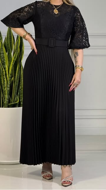 پیراهن نیمتنه گیپور با دامن پلیسه سایز :۳۶تا۴۸ رنگ مشکی سبز کرم سورمه ای