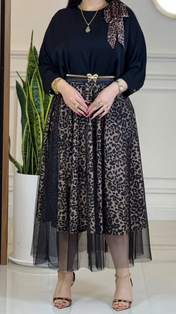 شومیز الیزه ترک و دامن پلنگی با تور فری سایز تا ۵۰
