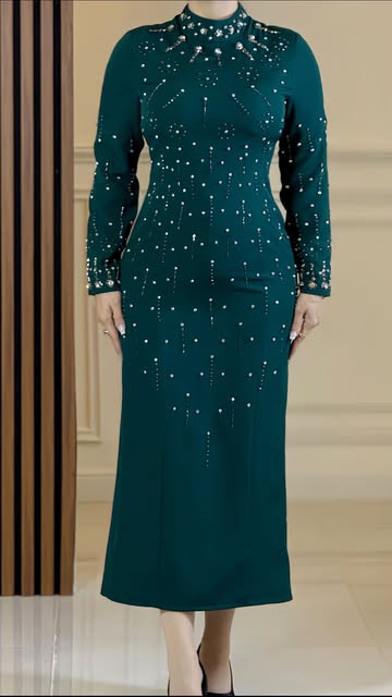 لباس سنگدوزی شده شیک مشکی سبز سایز ۳۶تا۴۶