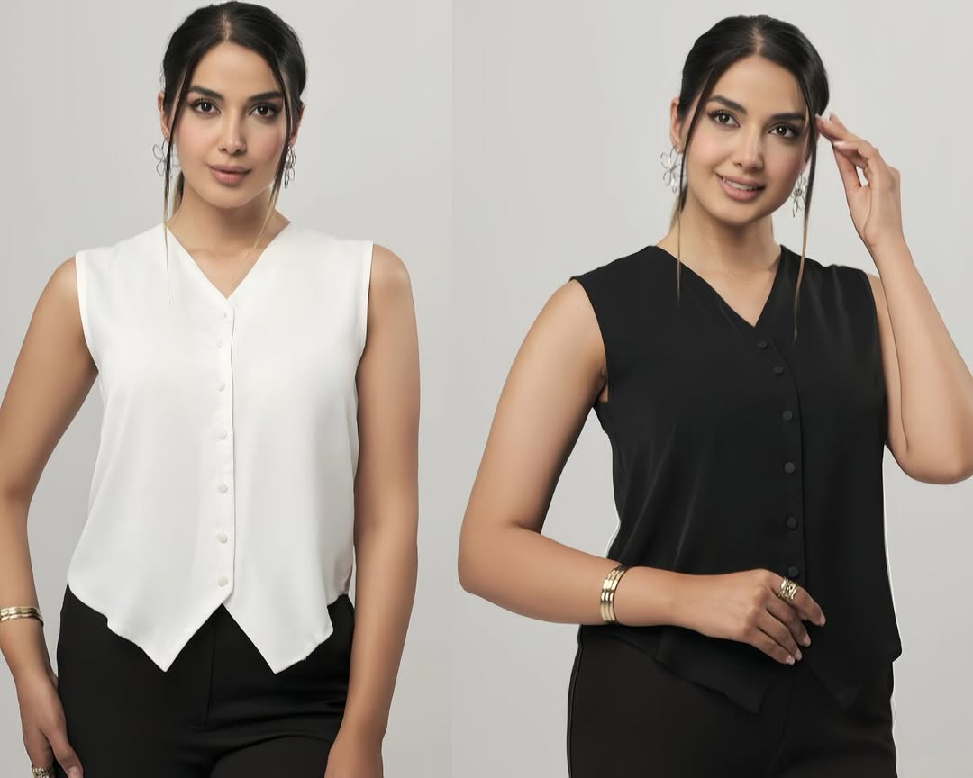 تاپ دکمهدار سایز 36تا ۴۶ طوسی مشکی سفید