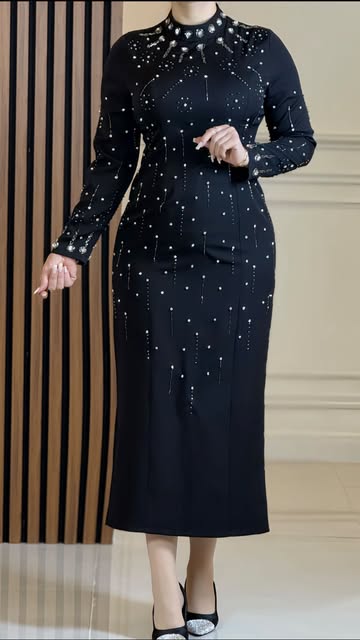لباس مجلسی مشکی با نگینهای نقرهای سایز ۴۸