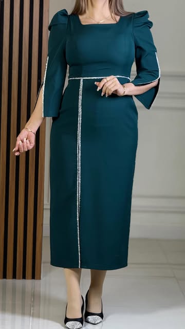 پیراهن جذب میدی سبز درباری با نگینهای نواری سوارسکی سایز۳۶تا۴۶