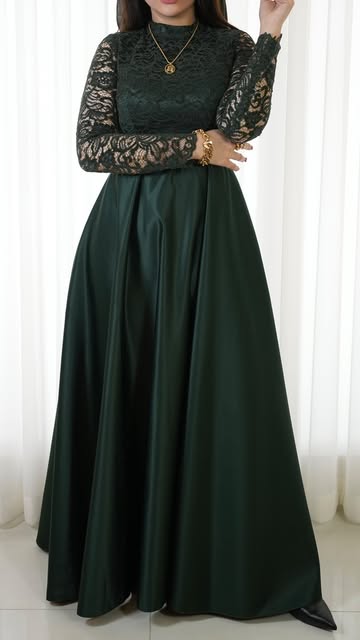 لباس مجلسی با دانتل و گیپور سورمه ای مشکی سبز کرم سایز:۳۶تا ۴۸