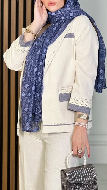 کت و شلوار زنانه کار شده سفید مشکی کرم سایز ۳۸تا۴۸