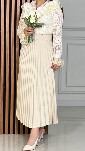 شومیز گیپور و دامن پلیسه کرم سایز ۳۶تا۴۸