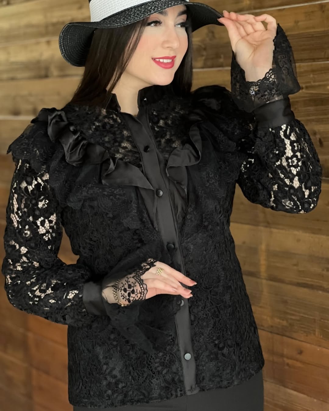 شومیز گیپور گل مخمل با خرج کار ساتن و دانتل مشکی و نباتی سایز۳۶تا۴۶